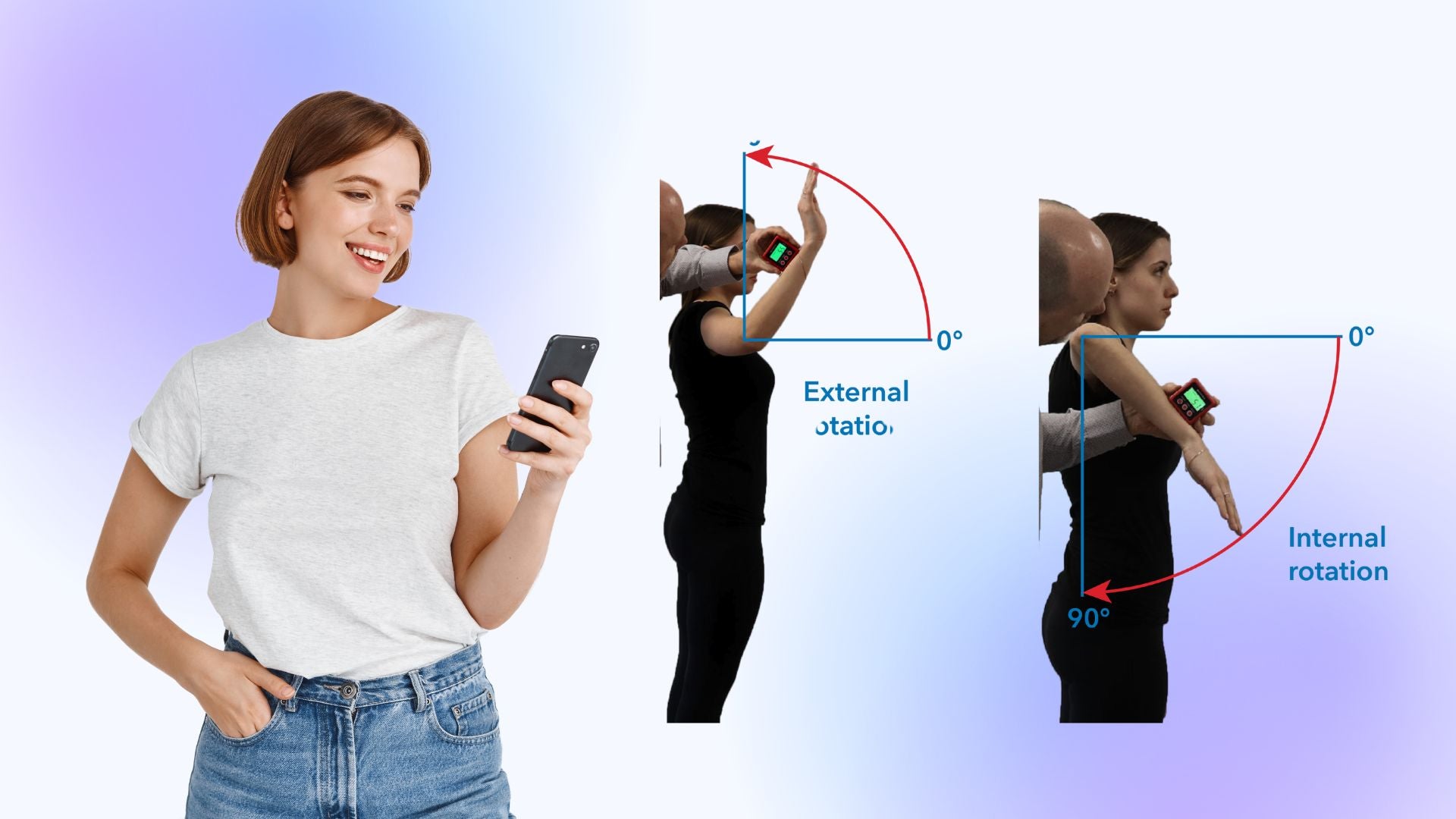 The digital goniometer provides precise joint angle measurements with easy-to-read degree markings.