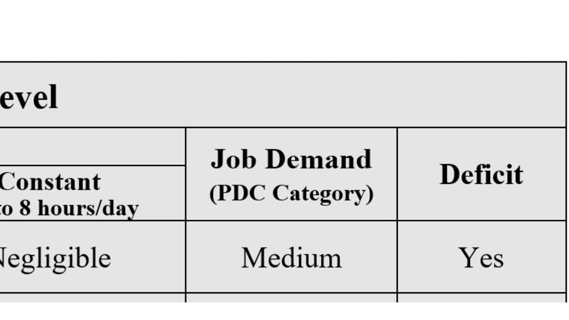 Physical Demand Level Occasional